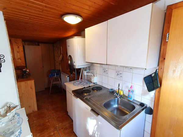 Weiterhin finden Sie ein kleines Kinderzimmer mit Flach-TV und Schlafcouch sowie eine separate Küche. In der Küche befindet sich ein Esstisch mit 4 Stühlen sowie eine Single-Küche mit Kühlschrank und 2-Platten-Herd. Ein kleiner Backofen und eine Mikrowelle befinden sich im Nebenraum.