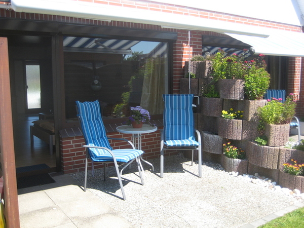 - Abgeschirmte Südterrasse mit Markise und Gartenmöbeln