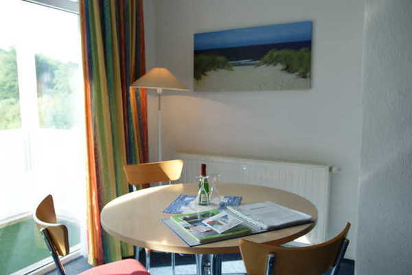 Das 1 Raumappartement hat einen Wohn-Schlafraum mit Doppelbett für 2 Pers.und einer ausziehbaren Couch, Kabel-TV,CD Stereoanlage ,Esstisch, gut ausgestattete Küchenzeile mit Geschirrspüler, Kaffeemaschine, Toaster und Microwelle. Babybett ( ohne Wäsche )und Hochstuhl für die kleinen stellen wir für 10 Euro zur Verfügung ( bitte vorbestellen ) .