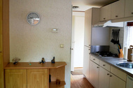 Die Küchenzeile verfügt u.a. über einen Kühlschrank, ein Gefrierfach, 4 Gas Kochstellen, einen Toaster und einen Wasserkocher.