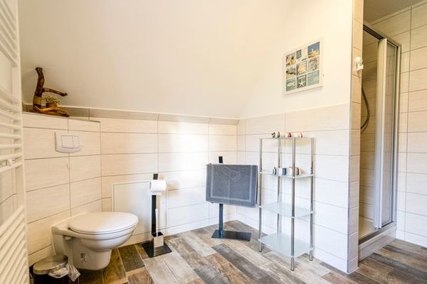 Die 65m² Ferienwohnung für 2 Personen befindet sich im Dachgeschoss des Reetdachhauses. Die Ferienwohnung besteht aus einem Wohnzimmer mit Couch, TV, Essbereich mit Esstisch und einer Küchenzeile (2 Kochplatten, Backofen, Kaffeemaschine, Wasserkocher, Toaster). Weiterhin befinden sich in der Ferienwohnung ein separates Schlafzimmer mit Doppelbett, Kleiderschrank und TV, ein weiteres Schlafzimmer mit Einzelbett, Kommode und TV sowie ein Badezimmer mit Dusche und WC. Die einzelnen Räume sind über den offenen Flur zu erreichen. Ein Parkplatz steht auf dem Hinterhof kostenfrei zur Verfügung. Internet-WLAN ist kostenfrei vorhanden.