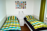 Das Schlafzimmer verfügt über ein Doppelbett und einen Kleiderschrank. In einem weiteren Zimmer stehen 2 Einzelbetten und ein Kleiderschrank.