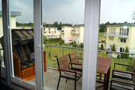 Zu Ihrer Wohnung gehören außerdem ein Balkon mit Balkonmöbeln und einem Strandkorb sowie einem PKW-Parkplatz und einer Fahrradbox.