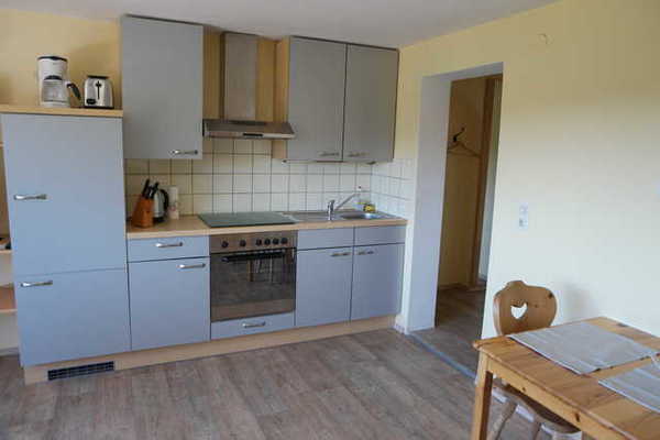 Unsere Nichtraucher-Ferienwohnung "Reiperts" im ersten Stock ist ca. 45 m² groß und bietet Platz für zwei Personen. Die Wohnung erreichen Sie über einen separaten Eingang. Die Wohnung verfügt über einen hellen Wohn- und Essbereich mit offener Küche, ein Bad mit Tageslicht und ein separates Schlafzimmer mit Doppelbett. Die Küche ist ausgestattet mit einem Cerankochfeld, Backofen, Kühlschrank mit Gefrierfach, Toaster, Wasserkocher und einer Kaffeefiltermaschine. Kochutensilien, Geschirr, Gläser und Reinigungsmittel sind ebenfalls vorhanden. Vom Wohnzimmer aus gelangen Sie auf den Balkon mit Blick in Richtung Süden. Dieser lädt Sie am Morgen zu einem ausgiebigen Frühstück mit Blick in die Natur ein. Oder genießen Sie einen herrlichen Sonnenuntergang mit einem Gläschen Wein und lassen den Abend entspannt ausklingen.