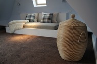 Die Schlafzimmer des Ferienhauses sind im ersten Stock gelegen und sehr hell. Eines ist zusätzlich mit TV versehen. Unter dem Dachgeschoss ergibt sich ein Rückzugsraum. Er ist außerdem mit einem Schreibtisch für ´arbeitswütige´ und einem weiteren Fernseher /DVD ausgestattet. Eine kleine Auswahl an Filmen liegt für Sie bereit.