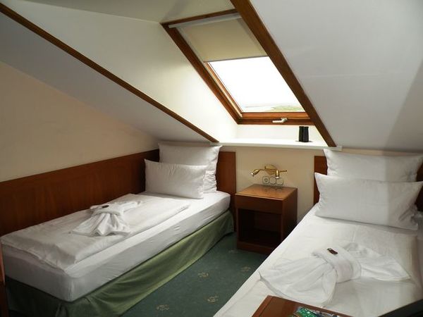 Klassisch eingerichtetes Zweibettzimmer mit Du/WC im 3. Stock Dachgeschoss (KEIN Fahrstuhl). Das Zimmer verfügt über 2 einzelnd stehende Betten, die auf Wunsch zusammen gestellt werden können. Das Zimmer liegt zur Seeseite mit Seesicht. Das Frühstück ist inklusive.