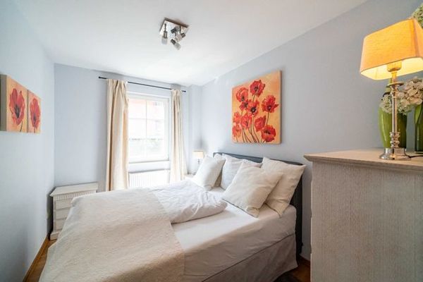 Alle Räume sind hochwertig und geschmackvoll eingerichtet und wirken hell und freundlich durch die großen Sprossenfenster. Die Küche ist ausgestattet mit einem Geschirrspüler und einem Herd mit Backofen. Die Wohnung verfügt über eine TV-SAT-Anlage. In der Wohnküche können Sie es sich am Kamin gemütlich machen. In der Wohnung finden 2 - 4 Personen Platz. Es gibt zwei Schlafzimmer mit Doppelbett (1 Bett 140x200). Im Badezimmer finden Sie eine Dusche / WC. Die Terrasse ist nach hinten ausgerichtet und Sie können den Blick ins Grüne genießen.
