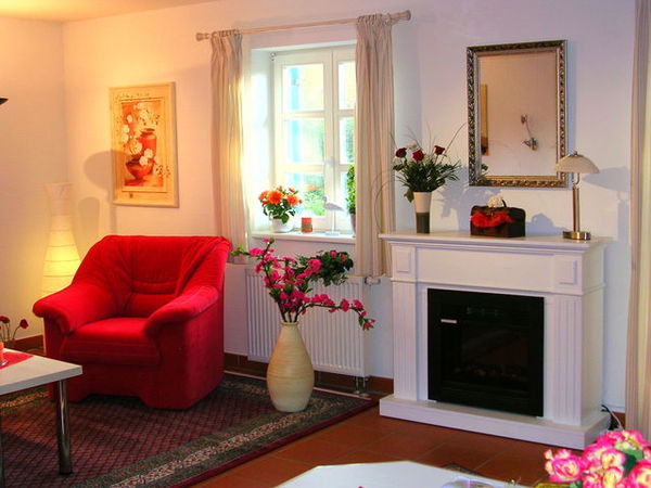 Der große Elektrokamin sorgt in den späten Abendstunden oder im Winter für die