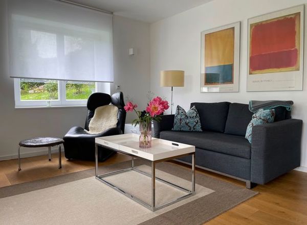 Die Wohnfläche beträgt ca.45 qm und ist eine Nichtraucherwohnung für 2 Personen. Die zwei Zimmer liegen im Souterrain und bestehen aus einem Wohn-/Esszimmer mit bequemer Ausziehcouch (140 x 200) sowie einem Schlafzimmer, kleinem Ankleidezimmer und Bad.