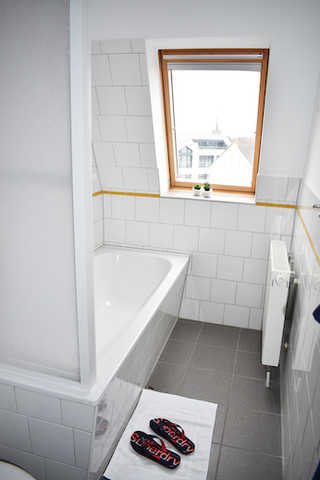 Dachgeschoss Wohnung im 3. Obergeschoss mit kleinem Balkon und Blick über die Dächer Borkums.