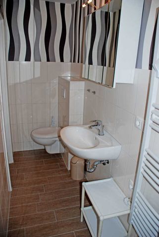 Das moderne Bad ist mit Dusche, WC und Waschtisch ausgestattet.