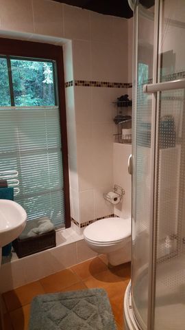 Küche mit Geschirrspülmaschine & Backofen. Große Erdterrasse. Dusche/WC, TV SAT/Kabel, Telefon/Internetanschluß. Schöne Liegewiese am Bach.