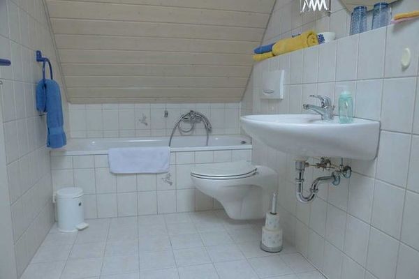 Diese FeWo verfügt neben einem Wohn-/Schlafbereich über eine voll ausgestattete Küche mit Ceranfeld, Backofen, Geschirrspüler, Mikrowelle usw. Bad: Wanne, Waschbecken, WC.