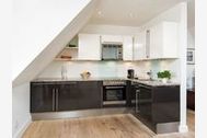 Entspannte Behaglichkeit in zentraler Lage: Die 2-Zimmerwohnung im ersten Stock eines modernen Ferienwohnhauses unter Reet liegt im Herzen des Ortes Kampen, ist aber dennoch alles andere als hektisch. Frische Brötchen und Lebensmittel gibt es im Haus nebenan. Restaurants, Boutiquen und Kampens gesellschaftliches Leben befinden sich direkt um die Ecke. Das Wohn-Esszimmer mit seiner offenen Küche und das geschmackvolle Duschbad punktet durch sein Ambiente im modernen Landhausstil. Das helle Doppelschlafzimmer bietet einen Blick in die Idylle von Kampens Gärten.