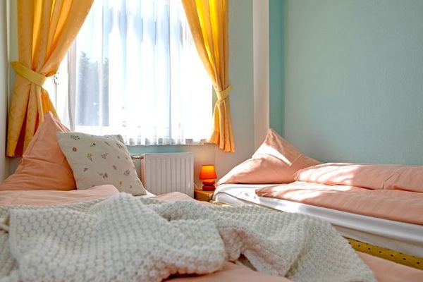 In dem anliegenden kleinen Schlafraum befinden sich zwei 80 cm x 2 m große Einzelbetten.