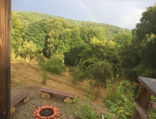 altes renoviertes, typisches Bauernhaus, mit drei Schlafzimmer, sehr ruhige Alleinlage ohne andere Gäste, wunderschöne Aussicht auf Buchenwälder und Naturwiesen, große Terrasse, Lagerfeuerstelle und Hängematte unterm Nussbaum, mit zentralem Holz-Kaminofen selber zu beheizen