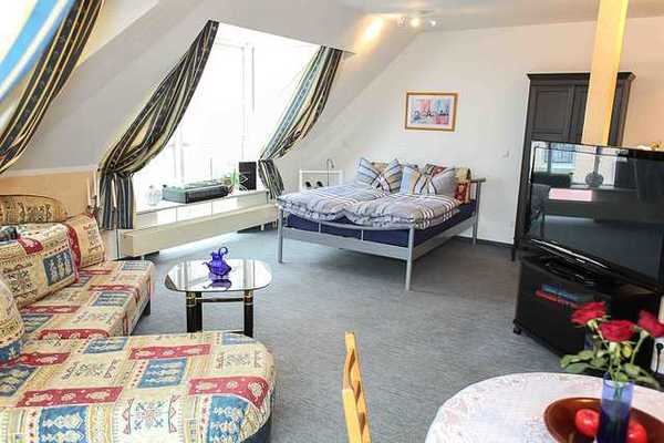 Die Ferienwohnung im 3. Obergeschoss eines 2004 errichteten Hauses mit einer Wohnfläche von 50m² wurde neu eingerichtet und ist ideal für 2 Personen, auf Wunsch ist auch eine Aufbettung möglich. Die Wohnung ist ganzjährig zu vermieten. Die Ferienwohnung verfügt über einen kombinierten Wohn- und Schlafraum mit einem Doppelbett, einer komplett eingerichtet Küche (inkl. Kühlschrank, Mikrowelle, Herd). Das Bad ist mit einer Dusche, Toilette und einer Waschmaschine ausgestattet.