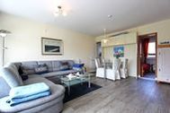 ebenerdig, mit ca. 55qm. Im hellen Wohnraum ist eine große, gemütliche Sofaecke, ein Glastisch, eine Kompaktanlage mit Radio u. CD-Player, ein Glasschrank mit SAT-Flat-TV sowie ein Essplatz für 4 Personen. Sie haben einen direkten Zugang zur Südterrasse mit Terrassenmöbel. Die kleine offene Küche mit Ceranfeld, Geschirrspüler, Kühlschrank mit Gefrierfach, Mikrowelle, Kaffeemaschine, Wasserkocher und Toaster bietet alles, um sich selbst zu versorgen.