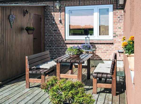 - 2x Terrassen davon eine Überdacht, Sitzgarnituren für je bis zu 4 Personen, Sonnenschirm. Hinter dem Haus befindet sich ein großer Garten mit Liegewiese und Grillmöglichkeit.