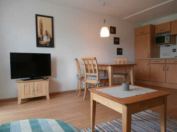 Ca. 50m² große Wohnung für zwei Personen im 1. OG. Es steht Ihnen ein geräumiger Wohnraum mit Ausziehcouch, großzügiger Küchenzeile und Balkon, ein separates Schlafzimmer und ein Bad mit Badewanne für Ihre Urlaubstage zur Verfügung.