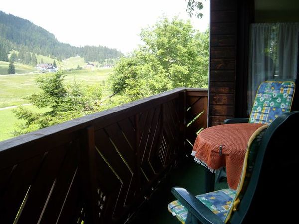 Appartement No.1: 52 m²,Küche im Wohnraum mit Essecke und ausziehbare Doppelbettcouch, Schlafzimmer mit Doppelbett und eine Schlafcouch, Diele, großes Bad(DU/WC) mit Balkontüre. südseitiger Balkon mit Sicht zur Krinnenspitze, Balkon mit drei Zugängen, große Panoramafenster.