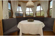 Sehr gut eingerichtete Ferienwohnung mit abgetrenntem Schlafzimmer aus Massivholz.