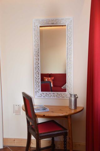 Alle 6 Stuben (Doppelzimmer) sind ausgestattet mit einem hochkomfortablen BoxSspring-Doppelbett, ausziehbarer (Schlaf-)Couch, Kleiderschrank (z.T. begehbar), Wasserkocher, Kaffeemaschine, Schminktisch, TV, Minikühlschrank. Sie finden in Ihrem Zimmer bei Ankunft Geschirr und Besteck sowie Tee, Zucker und Filtertüten. Die Klatschmohnstube verfügt bereits über ein saniertes Bad mit ebenerdiger Dusche, Handtuchwärmer und WC. Durch den Fliesenboden sind alle Zimmer allergikerfreundlich -> Hausschuhe nicht vergessen.