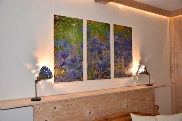 Alle 6 Stuben (Doppelzimmer) sind ausgestattet mit Doppelbett, Schlafcouch, Kleiderschrank (z.T. begehbar), Wasserkocher, Schminktisch, TVm Radiowecker, Minikühlschrank, Bad mit Dusche und WC. Durch den Fliesenboden sind alle Zimmer allergikerfreundlich -> Hausschuhe nicht vergessen.