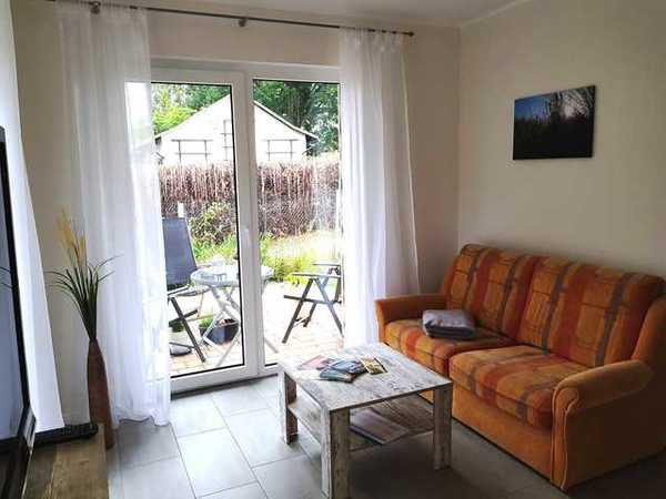 Die neuwertige, moderne Ferienwohnung im Bungalowstil ist ebenerdig und verfügt über einen großzügigen, hellen Wohnbereich mit Flat-TV & gemütlicher Couch (Schlafsofa für die 3. Person). In den Wohnbereich integriert sich die voll ausgestattete, offene Küche welche mit einem Backofen, Cerankochfeld, Spülmaschine, Kühlschrank, Tiefkühlmöglichkeit, Wasserkocher, Toaster & Kaffeemaschine ausgestattet ist. Das Schlafzimmer verfügt über ein hochwertiges Doppelbett und einen geräumigen Kleiderschrank für Ihre Urlaubsgarderobe. Das Bad ist mit Dusche/WC und Haartrockner ausgestattet. Vom Wohn-Küchenbereich aus gelangen Sie auf die sonnige Süd-West- Terrasse, welche zum Entspannen und Grillen einlädt. W-LAN steht Ihnen während Ihres Aufenthaltes kostenfrei zur Verfügung. Handtücher & Bettwäsche können auf Wunsch dazu gebucht werden. Ab 7 Nächten sind diese inklusive.