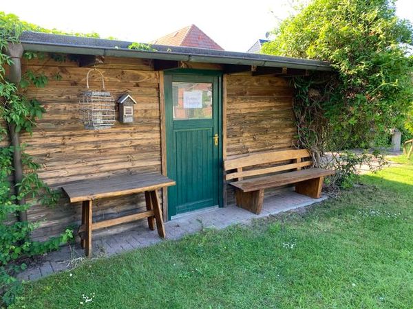 Der großzügig angelegte Garten mit jeweils zwei Grillplätzen und einem wetterfesten Unterstand, Sonnenliegen sowie einem abschließbaren Fahrradschuppen, steht allen Gästen zur Verfügung.