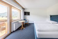 Drei Doppelzimmer jeweils mit eigener Dusche/ WC, Fön, TV, Safe und Balkon.