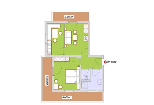 Das Comfort-Appartement für 2- 4 Personen verfügt über eine Küche, Wohnzimmer mit Ausziehcouch, Schlafzimmer, Dusche, getrenntes WC, Vorraum, Balkon, Flat-TV, kostenloses WLAN. Die Küche ist ausgestattet mit Herd, Kaffeemaschine, Wasserkocher, Kühlschrank.