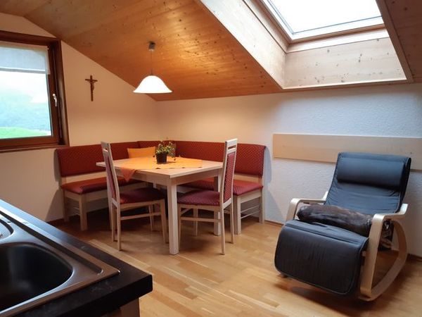 Unsere Wohnung "Dorfblick" verfügt über eine helle Wohnküche mit Fernsehsessel, separates Schlafzimmer, Dusche/WC, SAT-TV mit Flachbildschirm, kostenloses WLAN, und Balkon mit herrlichem Ausblick auf Schoppernau.
