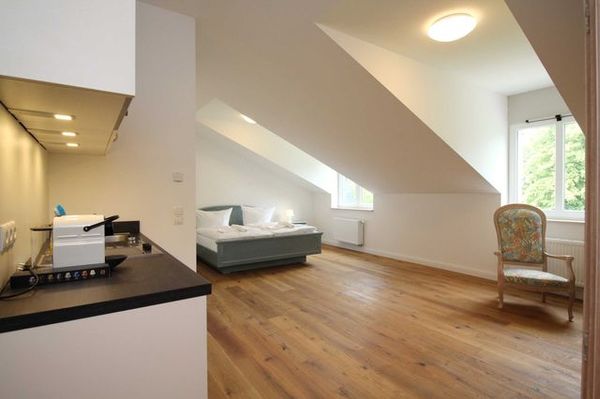 Die Schloss Apartments liegen im 1. Stock oder im Dachgeschoss mit Blick in den vorderen oder hinteren Park. Alle Apartments sind mit dem Aufzug zu erreichen. Sie sind modern-minimal oder klassisch ausgestattet und verfügen über eine moderne Küche mit Nespresso Kapselkaffeemaschine und weiteren Küchenutensilien . Die Apartments sind sehr unterschiedlich geschnitten. Größe der Apartments beträgt zw. ca. 30 bis 47 m².