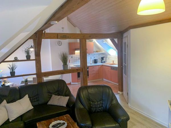 Die Ferienwohnung Inge bietet mit ihren 55 m² genügend Platz für 2-3 Personen. Die Wohnung ist perfekt ausgestattet, um dir einen komfortablen Aufenthalt zu bieten. Im Wohnbereich findest du eine moderne Küche mit Herd und Backofen, Spülmaschine, Kühlschrank mit kleinem Tiefkühlfach, Toaster, Kaffeemaschine, Wasserkocher und Mikrowelle. Ein einladender Esstisch, bequeme Stühle sowie ein gemütliches Ecksofa mit Sessel und TV laden zum Verweilen ein. Der Koch- und Essbereich ist durch ein charmantes Holzfachwerk optisch getrennt, was dem Raum eine besondere Atmosphäre verleiht. Das Schlafzimmer bietet dir ein komfortables Doppelbett (180x200) und ein zusätzliches Einzelbett (90x200), perfekt für erholsame Nächte. Im Bad ermöglicht dir die Dusche mit leichtem Einstieg, WC und Waschbecken einen erfrischenden Start in den Tag. Ein Highlight der Ferienwohnung ist der eigene Sitzbereich im Garten mit Tisch, Stühlen und Sonnenschirm. Hier kannst du entspannen und die frische Luft genießen. Dein Fahrrad kannst du sicher im abschließbaren Fahrradraum unterbringen und es besteht die Möglichkeit, E-Bikes gegen eine geringe Gebühr aufzuladen. Ein Parkplatz steht dir ebenfalls zur Verfügung.