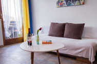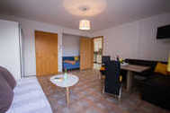 Das Apartment besteht aus Wohnküche abgeteilt mit Raumteiler mit 2 Einzelbetten, Wohnzimmer mit ausziehbarerer Doppelcouch,Sofa und gemütlicher Sitzgruppe, Schlafzimmer mit Doppelbett, separatem Eingang, Bad-Dusche und WC,Balkon.
