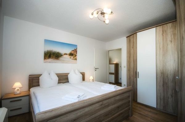 Das Schlafzimmer bietet einen hohen Schlafkomfort und viel Stauraum. Zur Ausstattung des Schlafzimmers gehört auch ein LED TV (40-Zoll).