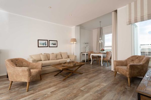 Im Jahr 2017 komplett neu renovierte und neu möblierte, exclusive Ferienwohnung Ferienwohnung mit großer Sonnenterrasse und Ostseeblick für 2-4 Personen; Komfort-Ausstattung der Wohnung im 4. OG mit 1 Schlafzimmer (2 Zimmer / 71 m²)