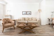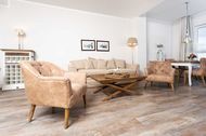Helles, großes Wohnzimmer mit Couchgarnitur (Schlafcouch für 1-2 Personen), Sessel, Flachbild-TV, Radio, Leseecke, Internetzugang (WLAN inkl.), Esstisch