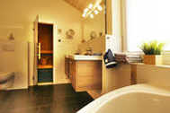 Ein Bad mit Whirlpool, ein weiteres Duschbad sowie die hauseigene Sauna sorgen für wohligen Wellness, ganz besonders in den kalten Jahreszeiten.