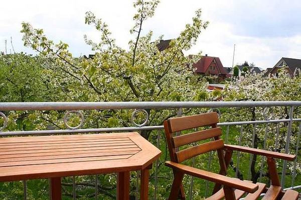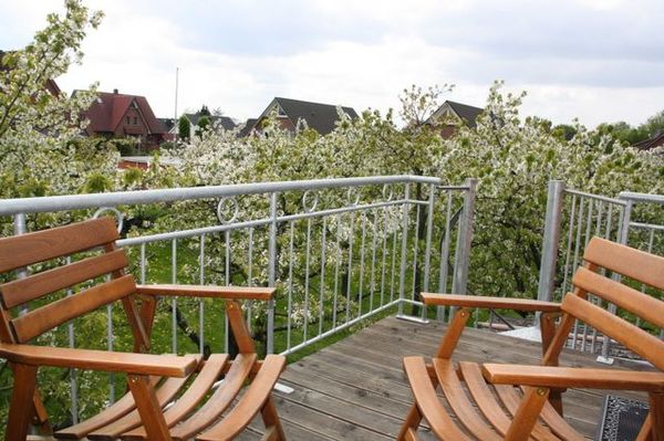 Mit Kirschen auf Augenhöhe: Unterm Dachjuchee: Dachbalkon und Dielen zeigen, dass das Haus über 100 Jahre alt ist. Spülmaschine, Backofen und Balkon verraten, dass die Moderne hier für Wohlsein sorgt, inkl. WLan. Vom Balkon aus wird der Garten zur Freiluft-Arena, mit Kirschblüten-Meer, hungrigen Staren, dem Blick zur Elbe... Und mit W-Lan ins Internet