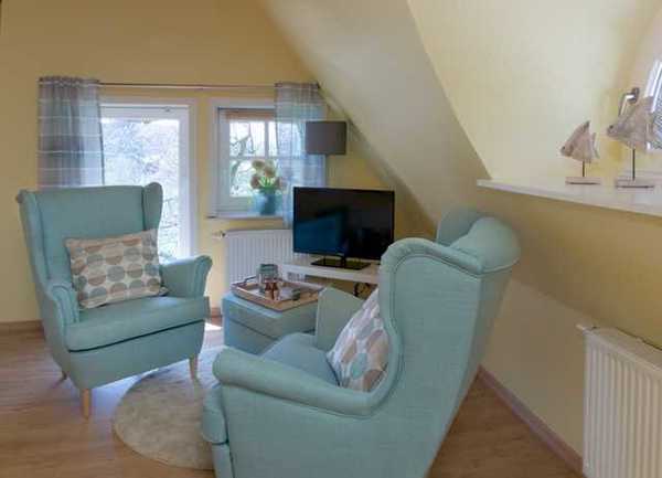 Wohnen Sie in einer gemütlichen 40qm Ferienwohnung (geeignet für 2 Personen) unter dem Reetdach des des 300 Jahre alten Fachwerkbauernhauses. Die Ferienwohnung verfügt über ein Wohn-Schlafzimmer mit Doppelbett, einer Sitzecke mit Sessel und TV, einer Kochnische und einem separaten Bad mit Dusche und WC. Hunde auf Anfrage. Hinweis: Die Ferienwohnung wurde im März/April 2018 frisch renoviert.