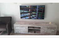 Flat-TV´s mit Satellitenanschluss im großen Schlafzimmer (43 Zoll) sowie im Wohnzimmer (55 Zoll). W-LAN ohne Gebühr. Separate, modern eingerichtete voll ausgestattete Küche mit allen Elektoreinrichtungen (Kühlschrank mit Tiefkühlfach, Geschirrspüler, selbstreinigender Backofen, Induktionsherd mit vier Kochplatten, elektrischer Wasserkocher, Kaffeefiltermaschine, Toaster, Mixer, Handrührgerät etc.) plus Esstisch für bis zu sechs Personen. Ebenerdiges Duschbad mit großer Duschkabine mit Glasabtrennung sowie Waschmaschine. Alle Räume sind mit hellem, unempfindlichem Designboden ausgestattet. Wohn- und Schlafräume mit dimmbarem Licht. Elektrische Rollläden sichern alle Räume (einschließlich der Eingangstür, falls erwünscht) und verdunkeln die Schlafzimmer. Ferner stehen Staubsauger, Bügelbrett/Bügeleisen und Fön zur Nutzung bereit! Wäschespinne und Wäscheständer im Außenbereich. Gartenterrasse mit zwei Liegen, sechs Gartenstühlen und großem Esstisch sowie Holzkohlegrill.