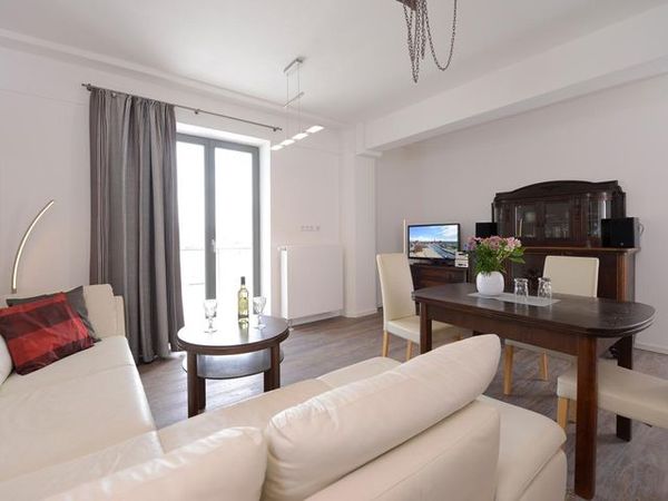 Das stilvolle 2-Zimmer-Appartement befindet sich im 1. Obergeschoss mit Lage in Richtung Altstadt. Mit seinen 64m² bietet diese exklusive Ferienwohnung ausreichend Platz für 2 Personen. Sie werden von einem hellen Wohnbereich mit Fernseher empfangen von dem Sie direkten Zugang auf den Balkon haben. Die separate Küche bietet jeglichen Komfort und ist komplett ausgestattet ( u.a. Geschirrspüler, Mikrowelle, Kühlschrank, Kaffeemaschine, Wasserkocher). Das moderne Schlafzimmer sorgt für erholsamen Schlaf. Des Weiteren steht Ihnen einen hochwertig eingerichtetes Duschbad und kostenfreies WLAN zur Verfügung. Bei Anreise ist ein Bett für 2 Personen bezogen und Handtücher liegen für Sie bereit. In unmittelbarer Nähe sind öffentliche Parkplätze vorhanden.