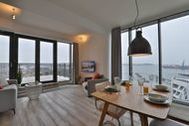 Appartementhaus mit 48 Appartements. Das exklusive 3-Zimmer-Appartement bietet auf 77m² luxuriöser Wohnfläche einen Urlaub der Extraklasse für 3 Personen. Über den Lift lässt sich das Appartement auf der 7. Etage leicht erreichen. Der kombinierte Wohn- und Essbereich mit TV-Gerät, Sofa und Essecke beinhaltet eine voll ausgestattete Küchenzeile mit Glaskeramik-Kochfeld, Backofen und Kühlschrank mit Gefrierteil und vielen Kleingeräten. Die 2 separaten Schlafzimmer mit Doppelbett, Kleiderschrank und je einem weiteren TV-Gerät sind sehr modern eingerichtet. Von der Dachterrasse, die Sie über den Wohnbereich erreichen, genießen Sie einen spektakulären Ausblick. Des Weiteren verfügt dieses charmante Appartement über ein Badezimmer mit einer hochwertigen Einrichtung. Gönnen Sie auch Ihrem Haustier einen Luxus-Urlaub und nehmen es gerne mit. Bei Anreise sind die Betten für 2 Personen bezogen und Handtücher liegen für Sie bereit. WLAN steht Ihnen kostenfrei zur Verfügung. In unmittelbarer Nähe sind öffentliche Parkplätze vorhanden