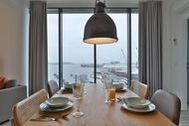 Das exklusive 3-Zimmer-Appartement bietet auf 77m² luxuriöser Wohnfläche einen Urlaub der Extraklasse für 3 Personen. Über den Lift lässt sich das Appartement auf der 7. Etage leicht erreichen. Der kombinierte Wohn- und Essbereich mit TV-Gerät, Sofa und Essecke beinhaltet eine voll ausgestattete Küchenzeile mit Glaskeramik-Kochfeld, Backofen und Kühlschrank mit Gefrierteil und vielen Kleingeräten. Die 2 separaten Schlafzimmer mit Doppelbett, Kleiderschrank und je einem weiteren TV-Gerät sind sehr modern eingerichtet. Von der Dachterrasse, die Sie über den Wohnbereich erreichen, genießen Sie einen spektakulären Ausblick. Des Weiteren verfügt dieses charmante Appartement über ein Badezimmer mit einer hochwertigen Einrichtung. Gönnen Sie auch Ihrem Haustier einen Luxus-Urlaub und nehmen es gerne mit. Bei Anreise sind die Betten für 2 Personen bezogen und Handtücher liegen für Sie bereit. WLAN steht Ihnen kostenfrei zur Verfügung. In unmittelbarer Nähe sind öffentliche Parkplätze vorhanden