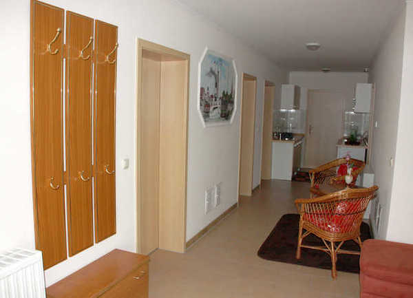 Reichlich Platz für 6 Personen. In dieser Ferienwohnung finden Sie eine Stube mit Couch, Sitzecke und TV. Weiterhin sind drei Schlafzimmer mit Doppelbett, Einzelbetten und franz. Bett vorhanden. Die Küchennische finden Sie hier auf dem Flur. Die Ferienwohnung hat einen separaten Eingang.