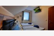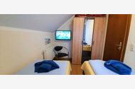 Unsere gemütlich eingerichtete 3-Zimmerwohnung (Nr. 4 oder Nr. 5) befindet sich im 1. Obergeschoss und verfügt über ca. 43 qm. Sie verfügt über einen möblierten Balkon und kann mit bis zu 4 Personen genutzt werden. Die Nichtraucherwohnung teilt sich auf in einen Wohnbereich, zwei Schlafzimmer, Tageslichtbad sowie eine im Wohnzimmer integrierte Küchenzeile mit Essbereich. Das Hauptschlafzimmer erwartet Sie mit Doppelbett sowie Kleiderschrank und TV. Im zweiten Schlafbereich stehen zwei Einzelbetten, Kleiderschrank und TV, zur Verfügung. Das Wohnzimmer ist mit Sofa, Sessel sowie mit einem Flachbild-Smart TV, WLAN und CD-Player mit Radio ausgestattet. Die Küchenzeile verfügt über einen Kühlschrank mit Gefrierfach, Backofen, Geschirrspüler, Geschirr, Besteck, Toaster, Mikrowelle, Ceranfeld, Kaffeemaschine und Wasserkocher. Das Tageslichtbad begrüßt Sie mit Dusche, Haartrockner und WC. Ein PKW- Stellplatz sowie Fahrradabstellmöglichkeit sind am Haus vorhanden.