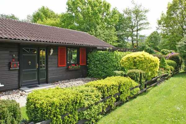 Blockhaus mit grosser Rasenfläche und eigenem Pkw-Stellplatz, ideal für Urlauber mit bis zu 4 Personen.