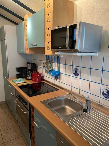 Die Wohnung ist ca. 43qm groß und bietet Platz für 2 Personen, da ist das Wohnzimmer mit einer kleinen Essgruppe, Sofa,Smart-TV,CD-Radio mit MP3-Anschluss. Im Schlafzimmer befindet sich ein Doppelbett von 180cm Breite getrennte Matratzen. Die kleine Küche ist mit allen notwendigen Dingen ausgestattet, wie z.B. Kühlschrank mit Gefrierfach, Ceran Kochfeld mit Backofen, Spülmaschine, Wasserkocher, Kaffeemaschine, Toaster usw.